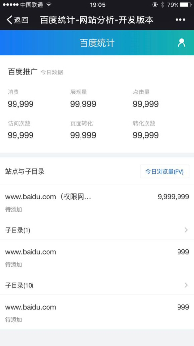 几乎所有和推广及网站运营息息相关的数据,都可以通过百度统计微信版看到,要操作的话,还是要通过PC端。